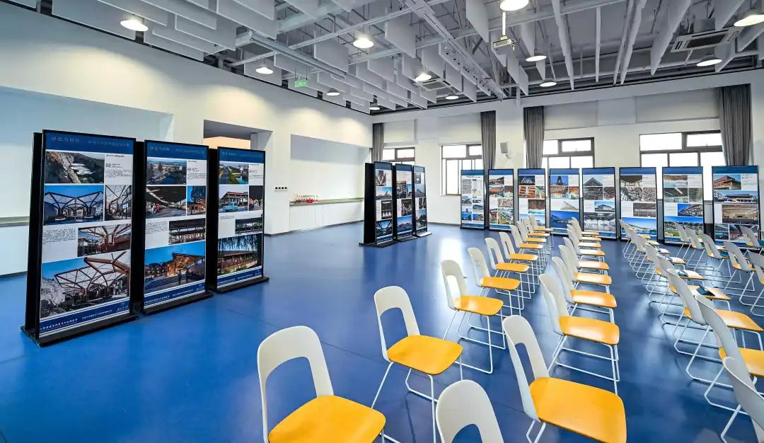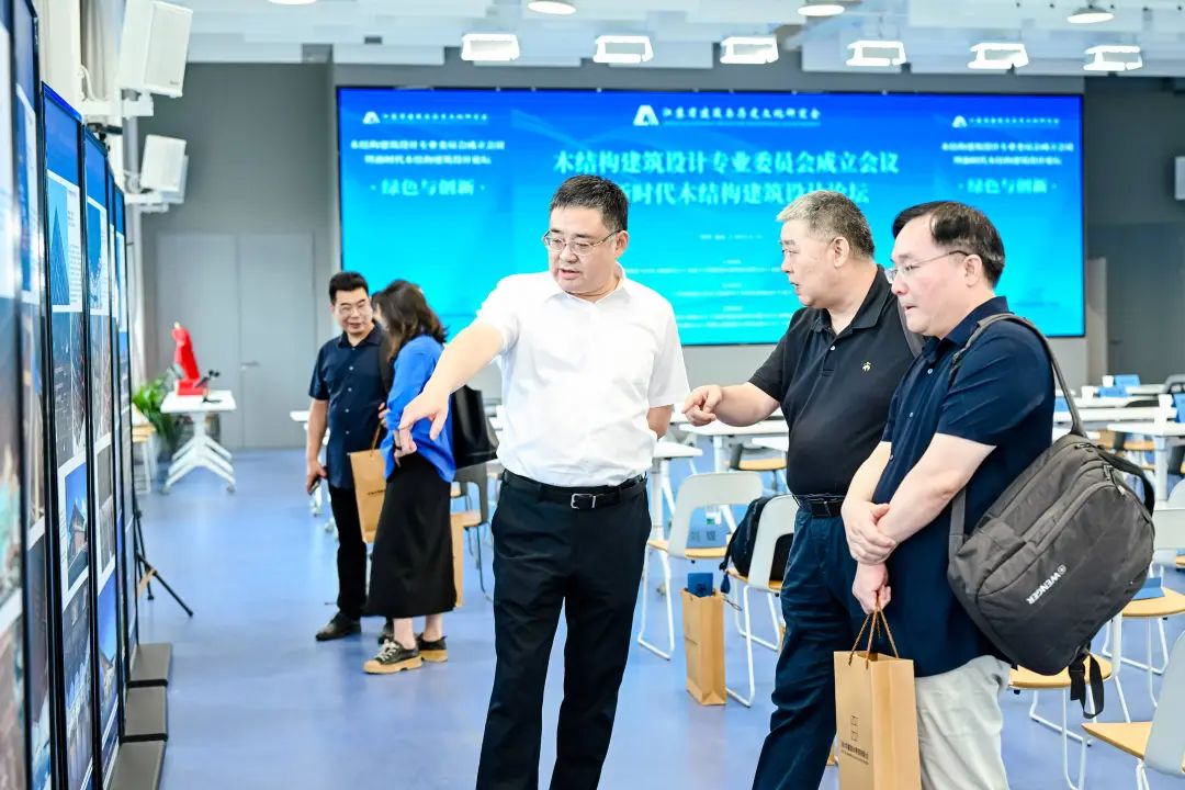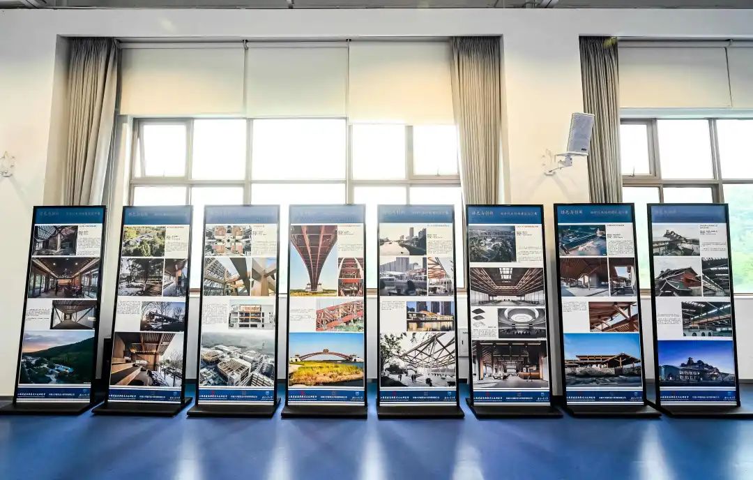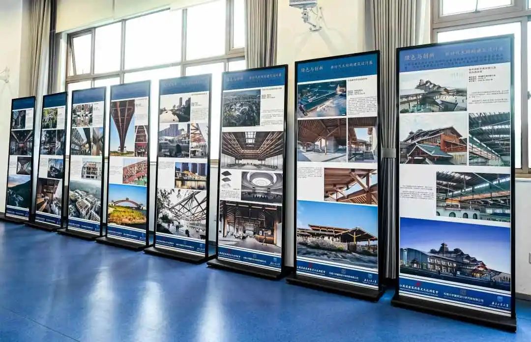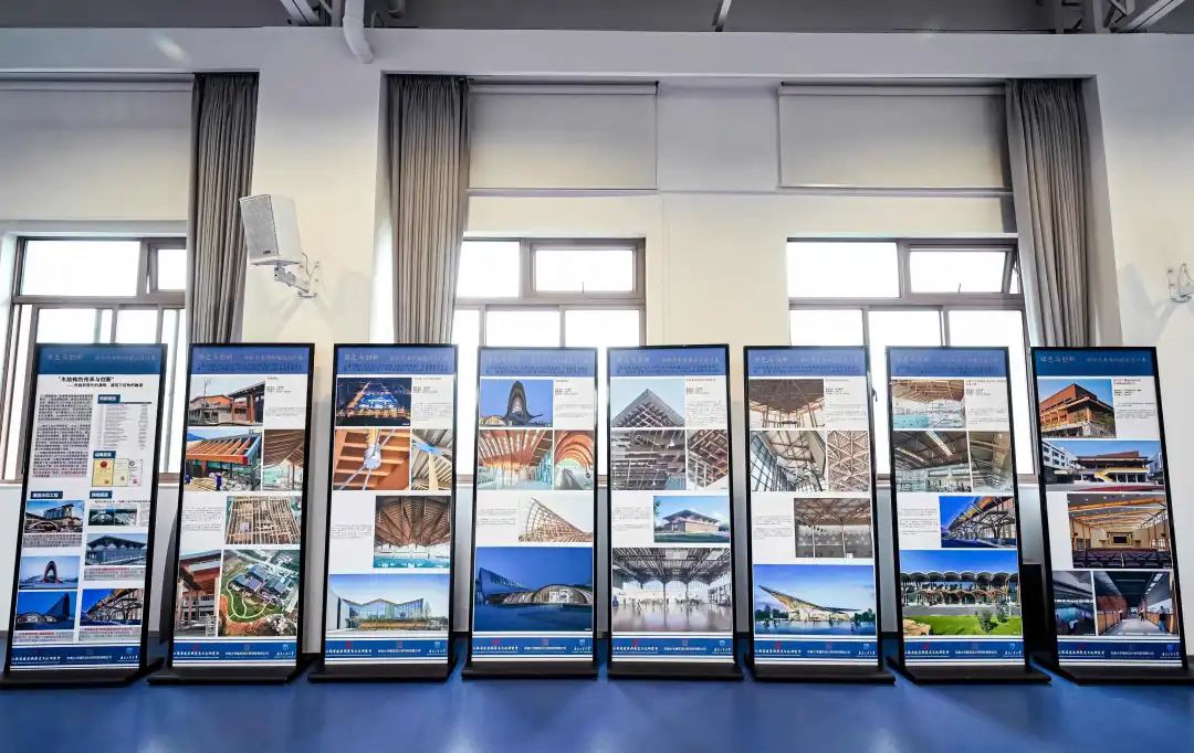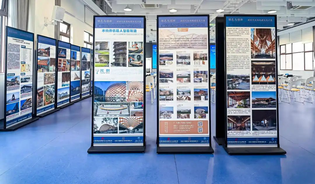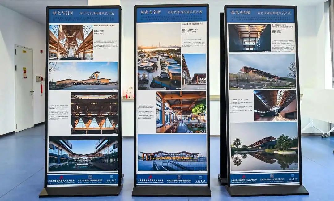 会议期间,由东南大学建筑设计研究院有限公司、南京工业大学组织的新时代木结构建筑设计展示区,展示了两家企业近期一系列木结构建筑设计方面的作品实例,展现了关于新时代木结构建筑设计实践和探索,通过文化赋能、科技赋能和标准赋能,推动木结构建筑从传统形制向现代功能转型。