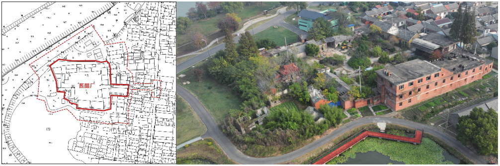 酱醋厂位于老街北端。总占地面积约5.1亩,建筑面积约2000㎡,地块的前身为镇区兴隆寺。现状虽已无寺庙建筑遗存,但其位置与规模都继承了兴隆寺的重要性,更是镇域空间与洪泽湖大堤的重要衔接性空间。鼓励参赛者通过对酱醋厂空间格局与演变历史的研究,重新植入能够活化周边组团的功能业态,使其转化为洪泽湖大堤沿线重要的公共生活引擎,让村镇细密肌理下的生活空间和洪泽湖沿线的风景空间形成新的关联。