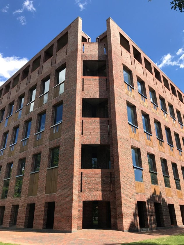 初到现场,大部分人都会被理性的立面处理所吸引,惊叹砖细腻的材料表情。有一些细心的建筑师会进一步发现立面的窗洞口宽度有些细小的变化,呈现出从下到上逐渐放大的趋势。