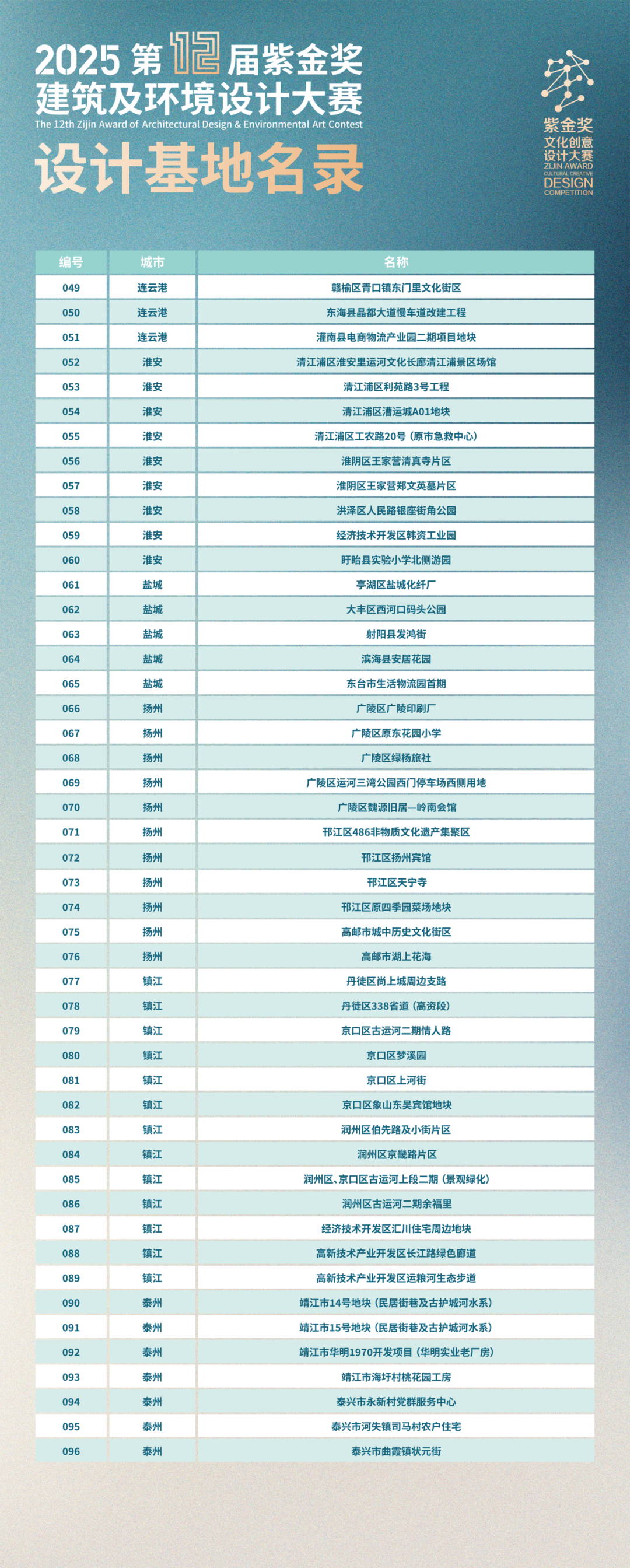 第十二届“紫金奖•建筑及环境设计大赛”已正式发布144个设计基地,基地类型多元,包括街区类、住区类、既有建筑改造或其他类。