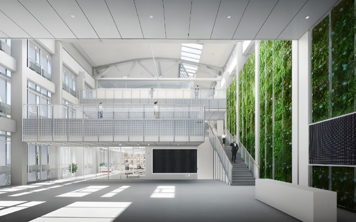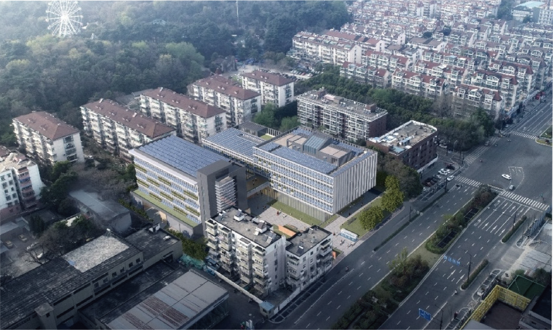 该项目位于玄武区红山路,毗邻红山动物园,总用地面积6782.89平方米,设计基于整体系统研究,将全寿命、系统化低碳建筑理念贯穿始终。设计系统探索了老城地块更新中融合拆除、改造、新建于一体的低碳建筑设计理念与策略:保留并改造原办公实验楼,拆除原有一层的结构试验室,新建总建筑面积1.35万平方米,形成了地上以办公、展示、交流为主,地下作为食堂、设备用房及智能停车库的综合体。