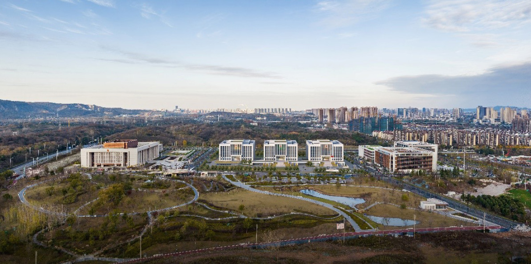泸州市市民中心项目基于对场地内山体生态景观的保护,采用建筑与自然山体的共构策略。主体建筑以台地姿态呈现,与自然山体穿插互动。