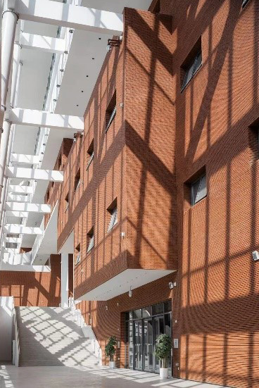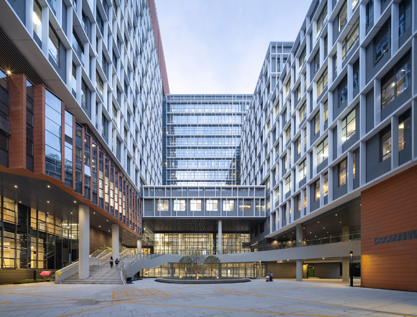 底层进行架空处理,实现人流的自由穿越、自由到达,提供多处室内外交往空间,促进学科交叉。餐饮咖啡、公共教学、公共会议等功能位于建筑一至四层,系科教学研究功能位于建筑上部,创造出多重体验的非正式交往空间,塑造了人文空间气质。