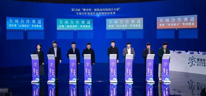 本届大赛设立无锡“蠡想湖畔”、南通“活力濠滨”、连云港“山海连云”、淮安“洪泽院子”四个专项合作赛道,决赛现场各赛道代表与设计团队共同签署作品落地协议,推动优秀创意设计作品落地转化。同时,新一届大赛专项合作赛道和设计基地社会征集也同步启动,以期更好地服务地方发展、拓展赛事辐射力。