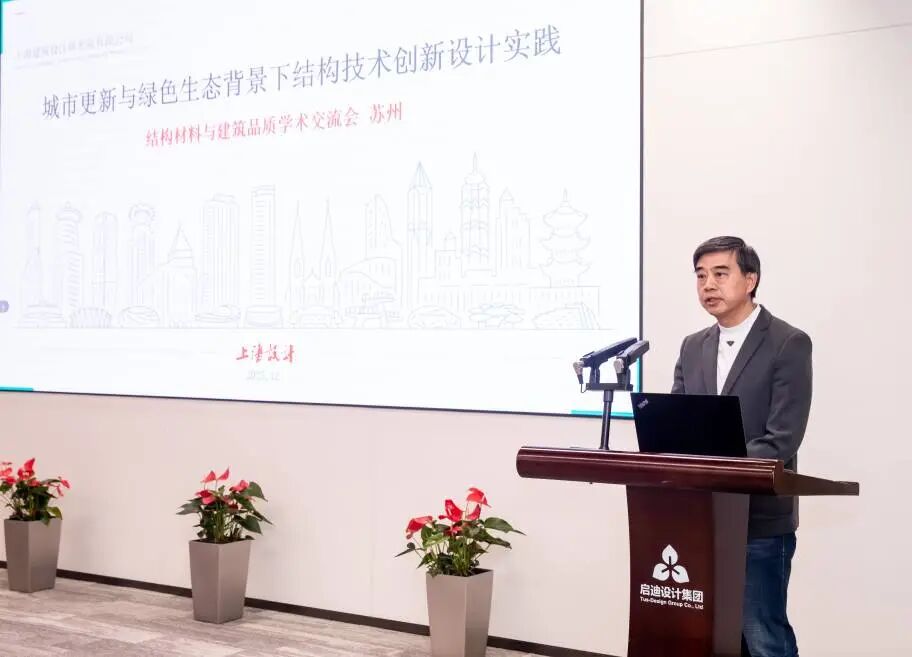 全国勘察设计大师李亚明作题为《城市更新与绿色生态背景下结构技术创新设计实践》的报告,报告结合上海世博温室花园获奖实践,阐述了在绿色更新背景下,如何通过创新铝合金结构体系、再生材料应用和数字化一体化设计,实现大跨度轻量化改造,保留工业遗存并显著降低碳排放,为城市更新提供了可复制的技术路径。