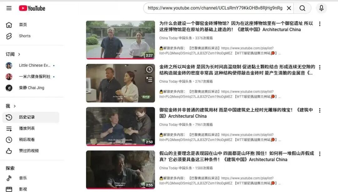 《建筑中国》(第一季)海外媒体平台Youtobe 播出