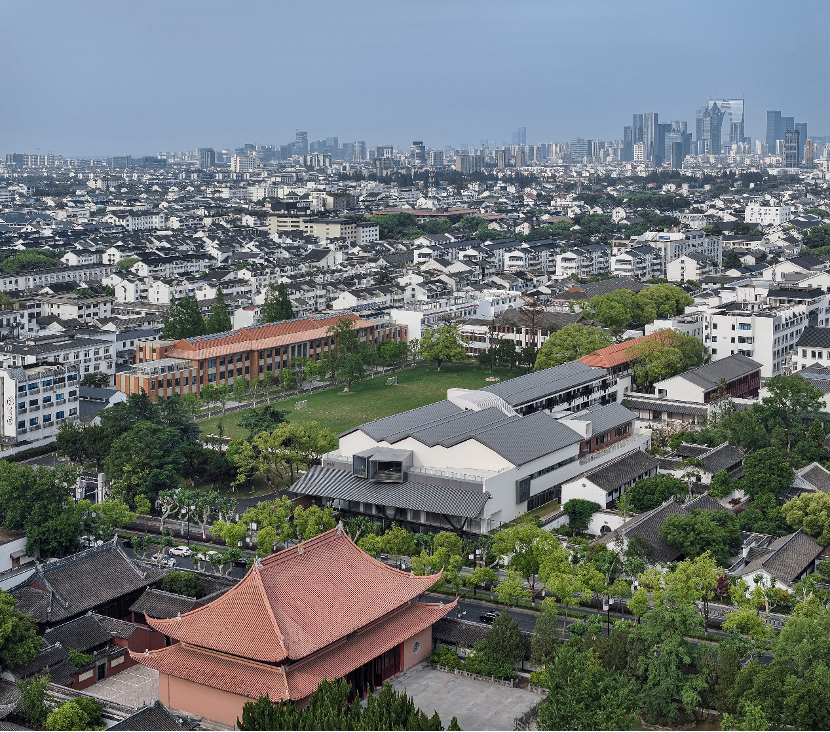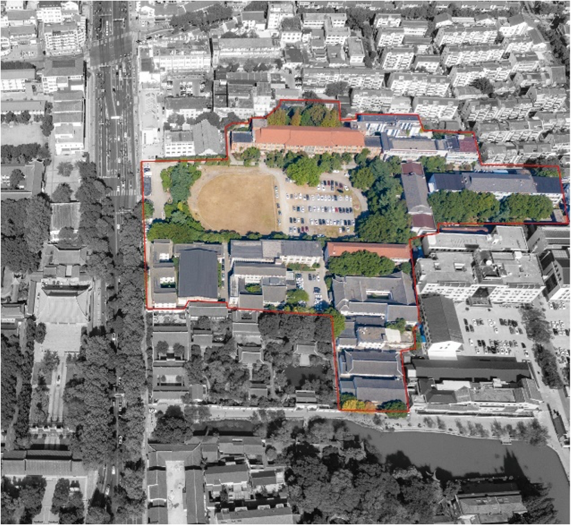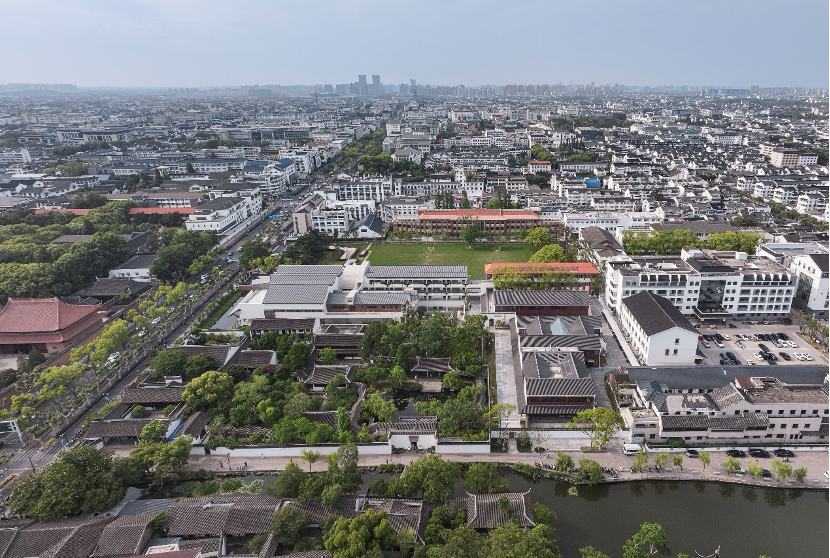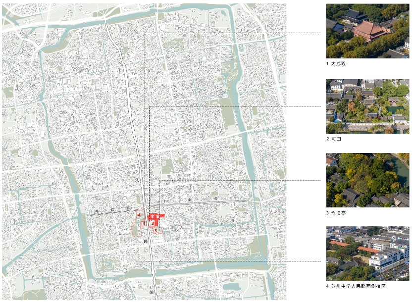 可园、沧浪亭、文庙大成殿,这三处古迹与正谊校区咫尺相邻,构成了苏州古城核心区高密度的文化遗产建筑群。如何处理新建筑与这些历史遗存的关系,是设计无法回避的课题。