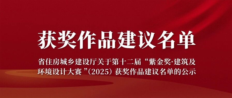 获奖公示 | 第十二届“紫金奖·建筑及环境设计大赛”(2025)获奖作品建议名单公示
