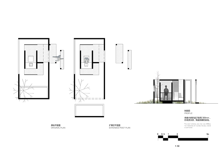 利用不同的场景,在最小的范围内,最少的建构物,完成一次空间转换。实现一个人,一张桌,一本书,一个世界。