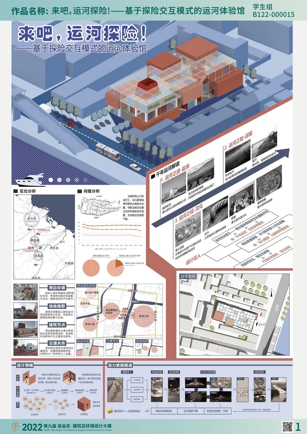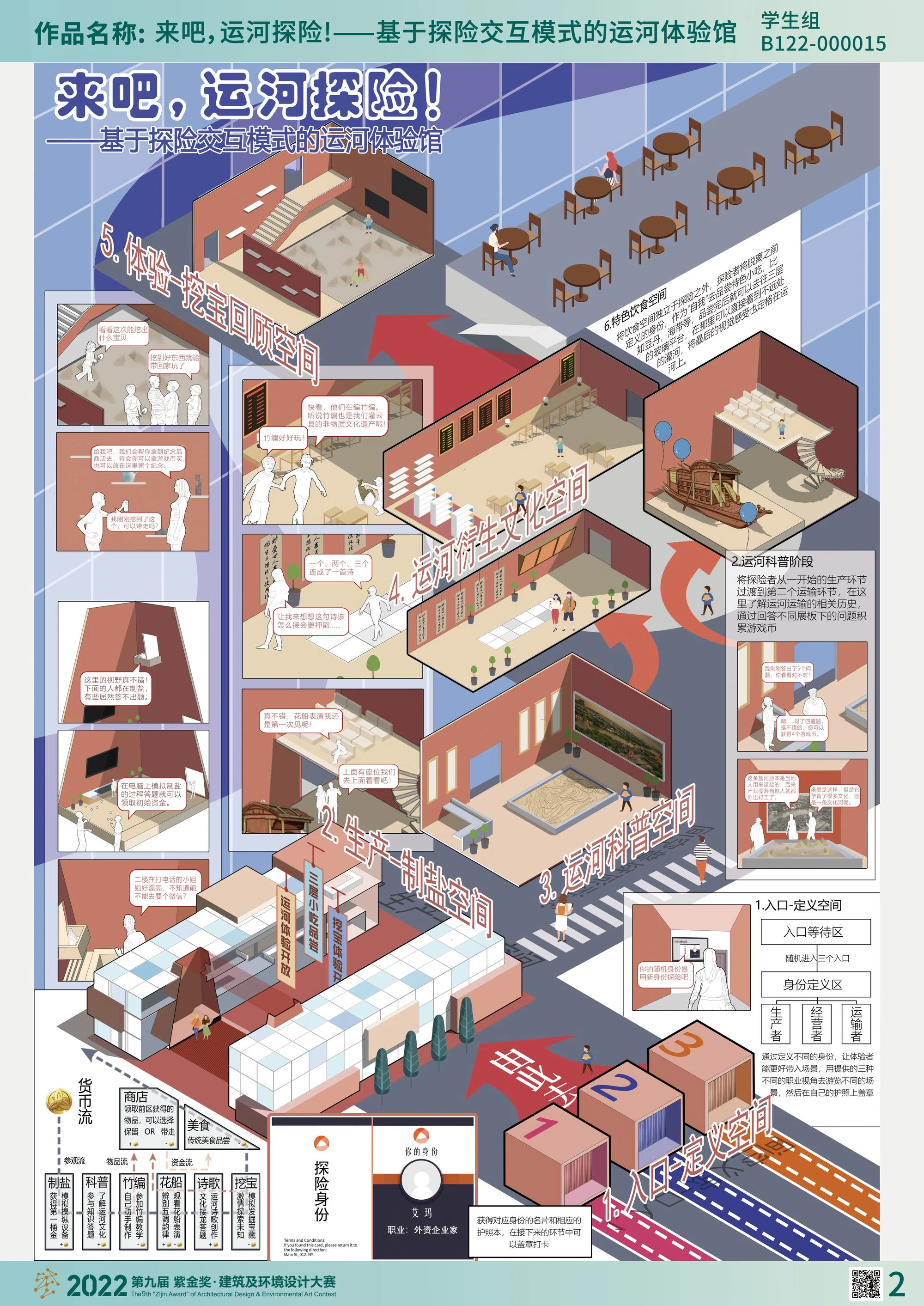 通过对灌云县的周边环境进行分析,发现了两个特点,一是周边环境有幼儿园和学生补习班,孩童居多;二是灌云运河历史在不同维度都很丰富,在此,我们提出初步构想,设计一个以体验为主的体验馆,考虑到孩童元素,体验以“探险”为主要串联因素,通过解读不同维度的运河文化,将运河历史分解为制盐的起源期,运盐的发展期和运河相关文化的衍生期,提取三个时期的主要因素,通过孩童喜闻乐见的游戏币模式串联,在不同空间里他们会获得或者消耗游戏币,最后可以兑换纪念品。希望通过这种探险的模式,让人们更加愿意参与这种互动式的科普教学,能够更加了解自身所在地的历史文化命脉,同时能够更加记忆深刻,以体验馆串联起科普与生活,从而同时体现主题“千年运河”和“活力家园”。