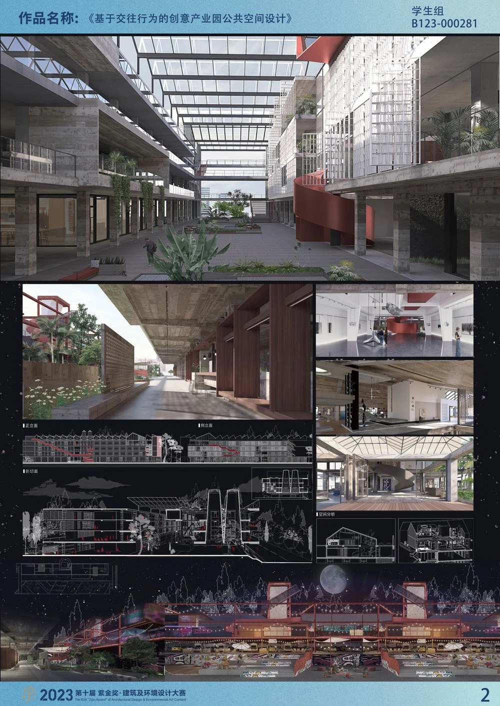 在我国经济社会的转型以及城市更新的背景下,人们对于公共空间的需求也发生了巨大的转变,因此交往方式和交往场所也面临着多样化的需求。人们对公共空间的使用过程即是塑造公共空间的一种形式。从交往行为的角度探讨创意产业园的公共空间设计,并体现在公共空间的物质属性和社会属性方面。本项目以调研了重庆金山意库产业园,对临近的金山工业区的C33地块进行改造实践,以开放性原则、社群性原则、适应性原则和互动性原则,对创意产业园的构建和塑造提出了要求,并体现在空间结构、活动内容、参与交往的人群、交往的方式等方面。