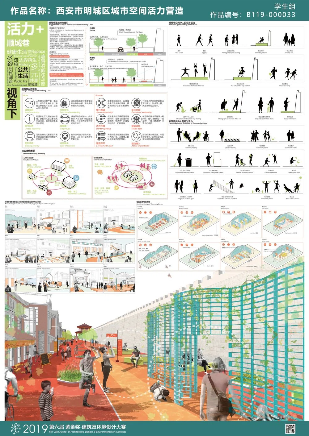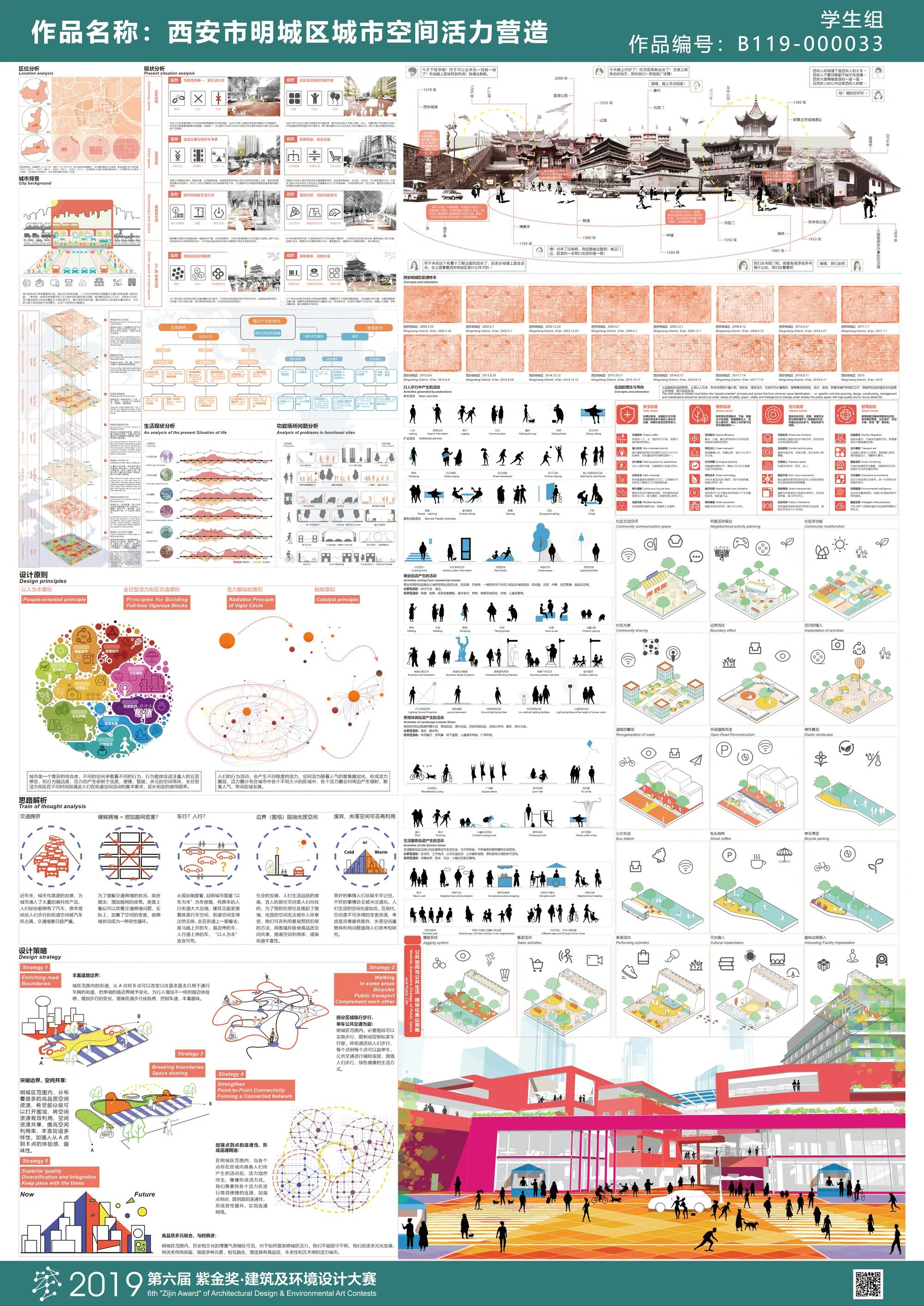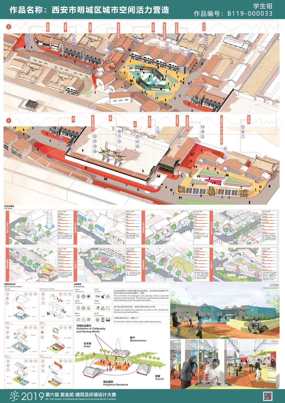 近年来,在我国城市更新理论引导下,西安市明城区进入新一轮城市更新阶段,本次课题以市民日常公共生活视角进行前期调研,具体围绕“明城区社区居民公共生活活动多样性调查分析、书院门历史街区改造、社区公共空间微更新以及城墙特色风貌区活力激活”等方面展开深入研究,通过城市设计的方法,并结合“古韵新作”的景观设计手法,旨在重塑的西安市明城区公共空间活力。