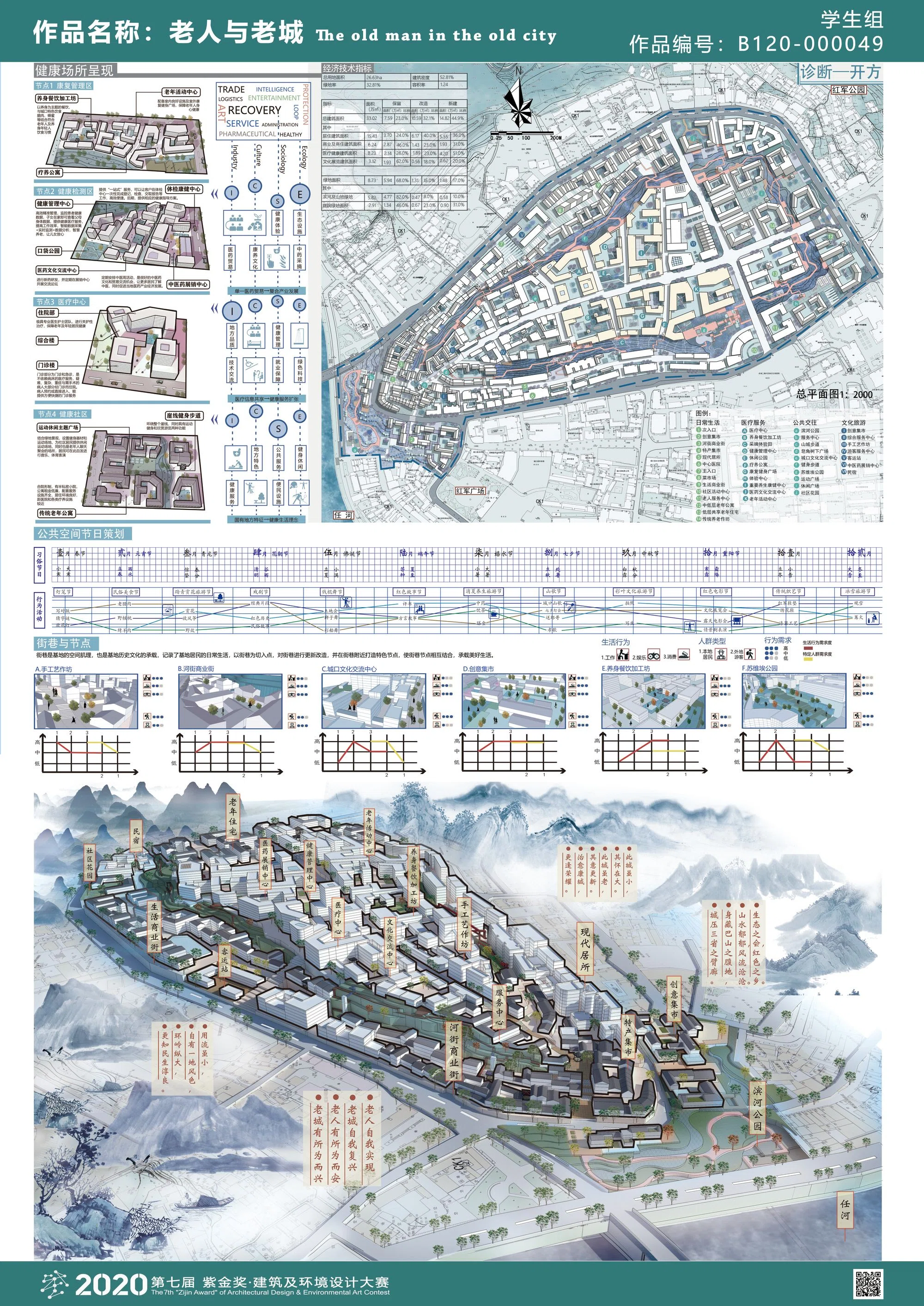自“中国老年人宜居宜游县”评选以来,重庆市城口县于2015年成为第六个获此殊荣的城市。我们从留守老人和衰落古城两方面入手进行场地问诊,分析出环境资源:丰富且颐养;社会资源:空闲但高龄;空间资源:良好但分散三个方面的优势和不足,对分散的空间把握场地环境优势,将高龄住民这一现实问题作为突破口,通过整合修补、再生重构、愈合康复三步策略达到老人有所为而安,老城有所为而兴的愿景,成为绿色健康的生态家园。其中上下半城崖线步道和健康场所的呈现是本设计的亮点。体现“此城虽小,其怀在大。此城虽老,其意更新。治愈康城,更逢荣耀。”的理想追求。