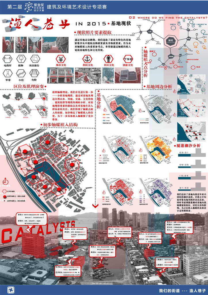 以触媒理论为基础,对所选基地现状进行要素提取。在现状中植入物质与非物质的触媒提出了老街区的建筑改造策略。通过触媒的作用引发街区建筑的持续性改进,从而营造活力社区文化核心。