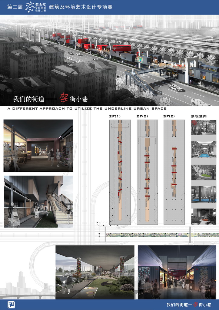 传统的街道体系大部分都是在一层空间,在现在这个寸土寸金的时代里,一层空间都留给了城市交通体系或者是商业价值比较高的综合体,我们希望改变街道体系的空间位置,利用高架桥下第二层的空间形成新的街道体系。